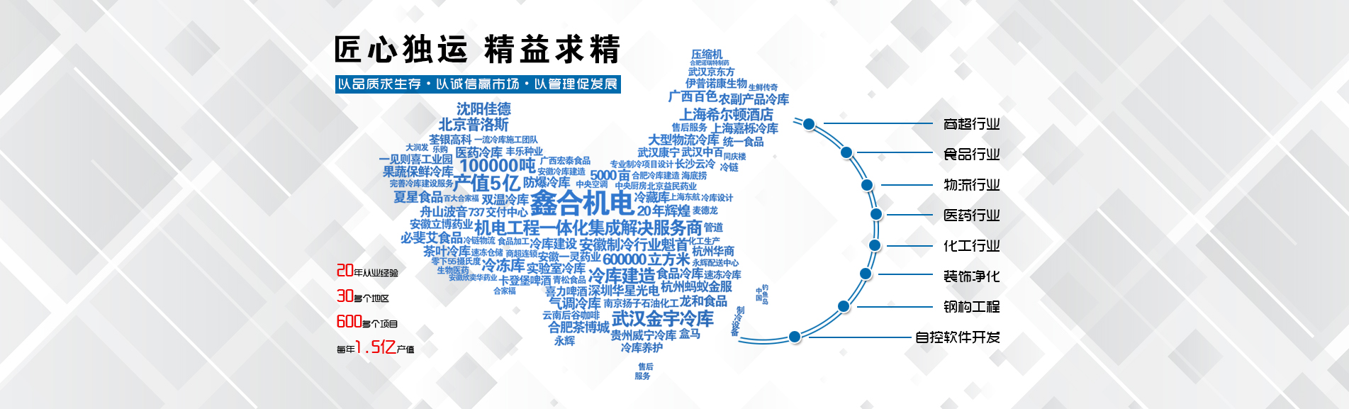 安徽鑫合機電設備有限公司于2002年組建運營,專業(yè)從事冷凍、冷藏庫、中央空調、醫(yī)藥凈化工程的規(guī)劃設計、施工承建、售后服務為一體的綜合性工程公司,與100多家實力雄厚的大中型企業(yè)建立長期產(chǎn)略合作關系,其中有多家世界500強和上市企業(yè)。公司作為中國倉儲與配送協(xié)會會員單位、安徽省制冷學會理事單位、上海楊浦區(qū)制冷協(xié)會工程總承包負責單位,引領于行業(yè)前沿。我們將銘記給予我們大力支持的各界新老朋友及合作伙伴,我們將會保持“互惠互利、共同發(fā)展”的原則與您共創(chuàng)雙嬴的合作關系。